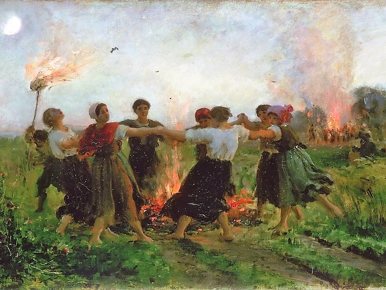 Om kvällen när det mörknat tändes eldar. På samma sätt som vi hälsar våren till Valborg hälsar man sommaren. Folk samlas runt eldarna och sjunger. När bålet börjar falna men fortfarande brinner tävlas man att hoppa rakt genom elden. Djärva grabbar drar flickvännen med sig och hoppar med skräckblandad förtjusning över elden. På bouleplanen är det tävling med största allvar - pengar står på spel och ungdomarna dansar till gryningen på bygatan. Ja se det är Provence!