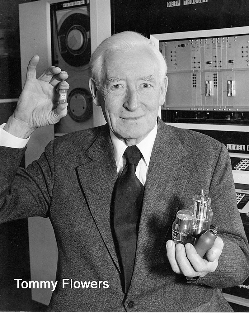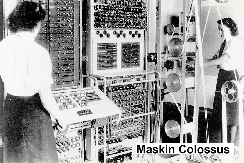Denna kunde med svindlade hastighet ta emot de krypterade meddelandena. I slutet av kriget hade man 10 st. Hans revolutionerande arbete erkändes inte av myndigheterna. Såvitt jag förstår fattade man inte riktigt vidden av det hela. Flowers erhöll 1000 pund i ersättning vilket inte ens räckte till hans egna utlägg. Han delade summan mellan den personal som assisterat honom. Efter kriget sökte han lån hos en bank för att vidareutveckla sina datorer. Banken nekade honom lånet med motiveringen att han inte kunde åstadkomma något sådant. Hans tystnadsplikt förbjöd honom att tala om att han redan byggt flera. Han återgick till sin tjänst som chef på Englands motsvarighet till Post- och Televerkets tekniska avd. Först på senare år har hans banbrytande arbete till fullo blivit känt men dessvärre försent, Flowers dog 1998, 92 år gammal. Kvinnorna som jobbade med dessa maskiner ingick i The Womens Royal Naval Service = The Wrens. Tre av dem låter vi komma till tals. Många var tonåringstjejer som precis avslutat skolan.