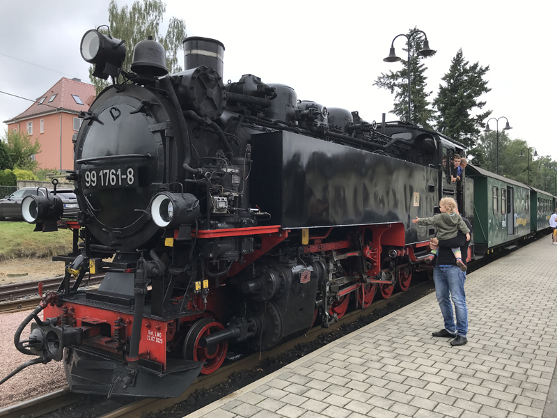 Ännu en spännande dag som skulle gå i ångans och hästkraftens anda. Viktor vår busschaufför körde oss till tågstationen i Raderbeul där vi klev ombord på en av vagnarna från gamla tider dragna av ett ånglok.