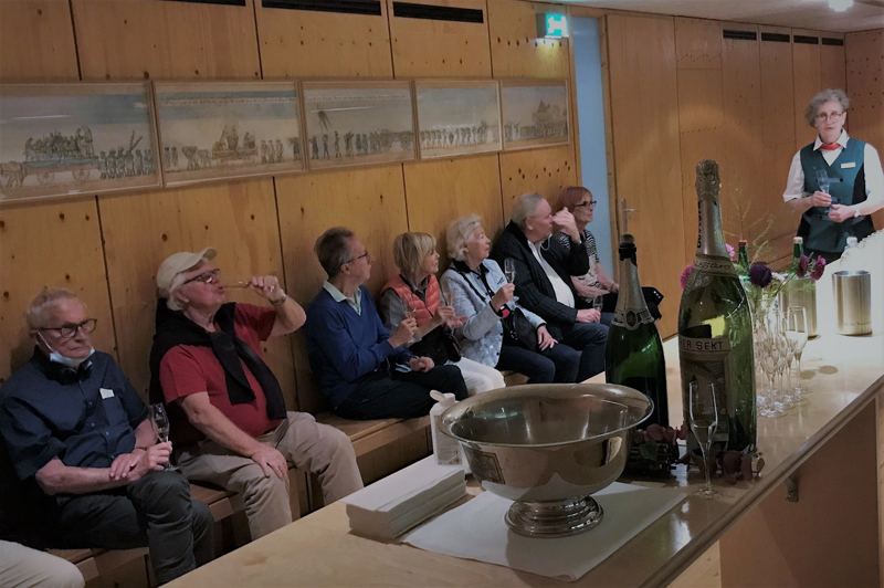 En guide berättade (på engelska) om hur vinet producerades från vinstock till färdig dryck. Det vita vinet stod för 80% av totala produktionen. Man tillverkade även en Sekt (tysk champagne) som till och med vunnit pris hos de franska champagnedomarna.